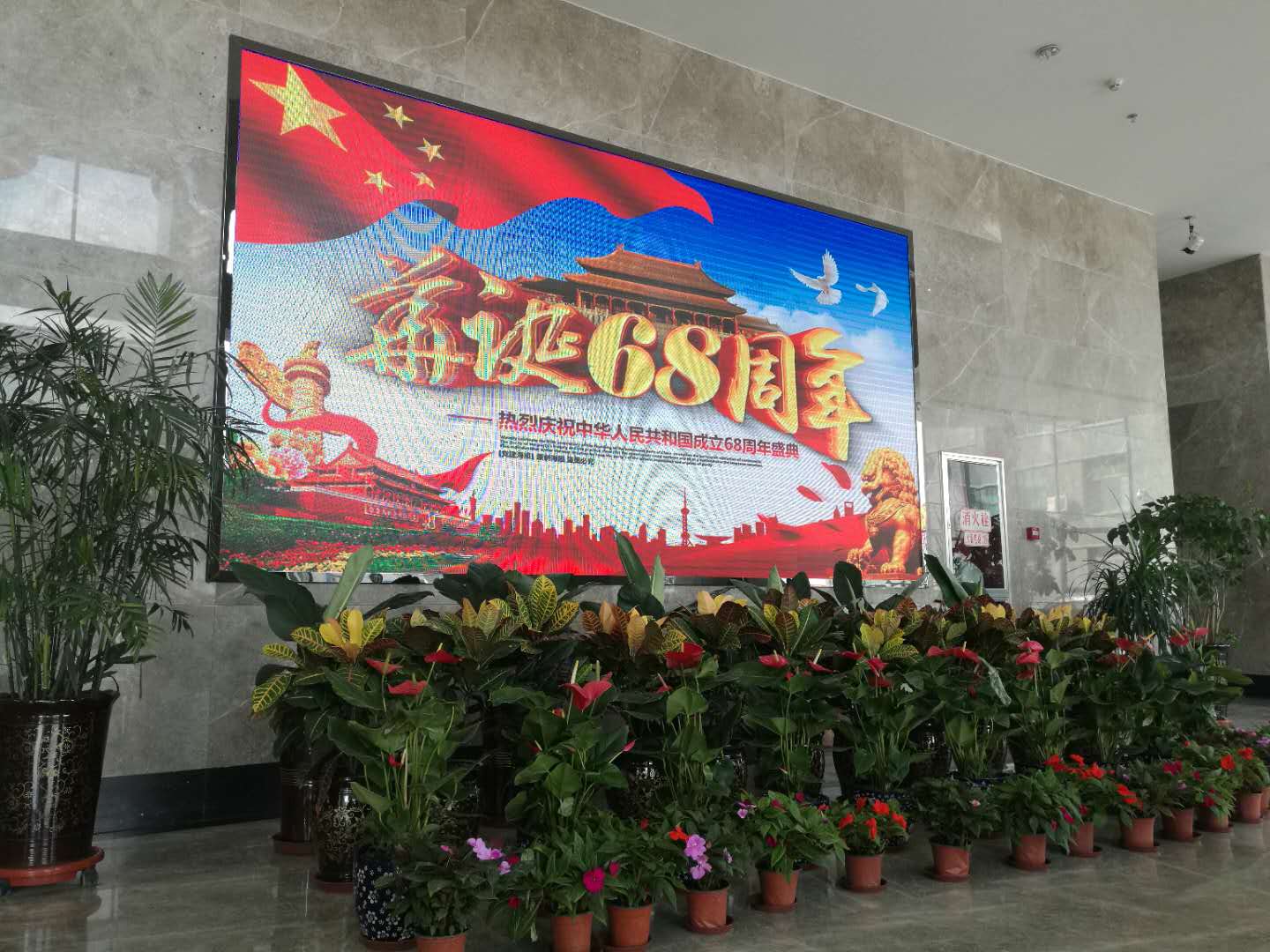 (朝物開投 訊 戴韻禮/文攝)為慶祝建國68周年,朝陽物流開發(fā)投資有限公司開展"喜迎國慶,歡度中秋"的準備工作。我公司在物產(chǎn)大廈門前紛紛懸掛起國旗和大紅燈籠,營造喜慶祥和的節(jié)日氣氛。在樓內(nèi)大廳擺放鮮花,迎接國慶節(jié)的到來。把黨的關心和關懷傳達到每一名員工,讓全體員工都能感受到公司"大家庭"的溫暖。也為喜迎黨的十九大勝利召開做好前期宣傳工作。