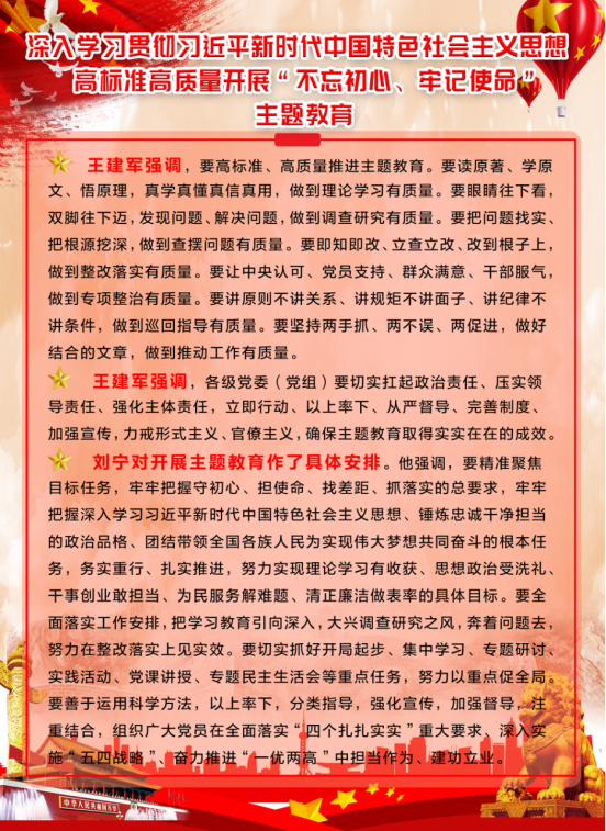 由集團黨委副書記、總經(jīng)理劉玲同志宣讀《集團黨委開展"不忘初心、牢記使命"主題教育實施方案》。集團黨委書記、董事長王玉輝同志作了"不忘初心、牢記使命"主題教育動員講話,對集團系統(tǒng)開展主題教育工作進行了安排部署,要求把主題教育與完成本單位轉型升級、項目建設、生產(chǎn)經(jīng)營等工作任務結合起來,切實把主題教育成果轉化為企業(yè)發(fā)展的強大動力,推動青海物產(chǎn)高質(zhì)量發(fā)展。省委"不忘初心、牢記使命"主題教育第十二巡回指導組組長任正德同志做了指導講話。充分肯定了集團黨委的前期工作,認為會議準備比較充分,有效統(tǒng)一了干部職工的思想,制定的主題教育《實施方案》操作性強,目標任務具體,動員講話政治站位高,思想認識深,工作思路清晰。同時,結合工作組的職責就落實主題教育各項任務講了六點意見。一是聚焦根本任務;二是把握"十二"字總要求;三是緊扣"五句話"總目標;四是落實"四個貫穿";五是抓實"六項重點"舉措;六是力戒形式主義,嚴禁主題教育走形式、走過場。