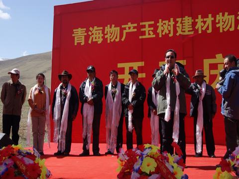 省玉樹地震災(zāi)后重建現(xiàn)場指揮部指揮長、副省長馬順清宣布建材物流集散中心正式開工并講話。省政府副秘書長巨偉、省經(jīng)委、省城鄉(xiāng)住房建設(shè)廳、西寧市政府、玉樹州政府相關(guān)部門、玉樹縣有關(guān)負責(zé)同志,省物產(chǎn)集團總經(jīng)理王玉輝、黨委書記白家林、副總經(jīng)理物產(chǎn)化工公司董事長耿保平等參加了開工儀式。