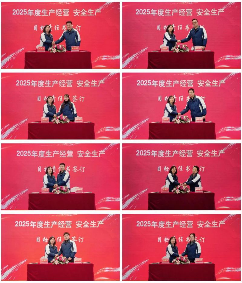 表彰之后,公司黨支部書記、董事長(zhǎng)、總經(jīng)理杜慶華同志分別與公司各部門負(fù)責(zé)人簽訂2025年度生產(chǎn)經(jīng)營(yíng)和安全生產(chǎn)工作目標(biāo)責(zé)任書。
