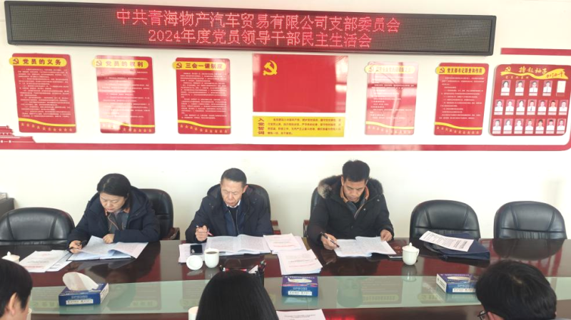 按照集團黨委《2024年度黨員領(lǐng)導(dǎo)干部民主生活會實施方案的通知》要求,2月8日下午,汽貿(mào)公司黨支部召開2024年度黨員領(lǐng)導(dǎo)干部民主生活會。集團黨委委員、紀(jì)委書記殷升到會指導(dǎo)。公司黨支部書記、董事長、總經(jīng)理杜慶華主持,班子成員參加,黨員代表列席。