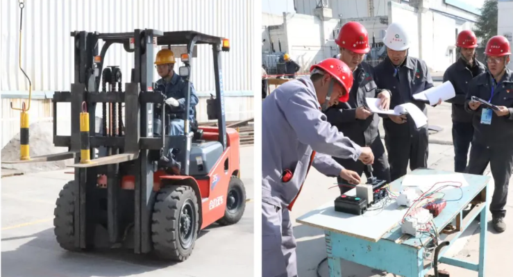 開(kāi)幕式后,進(jìn)行了理論知識(shí)測(cè)試以及叉車(chē)、電工兩個(gè)項(xiàng)目的實(shí)操比拼,拉開(kāi)了本次競(jìng)賽的序幕。