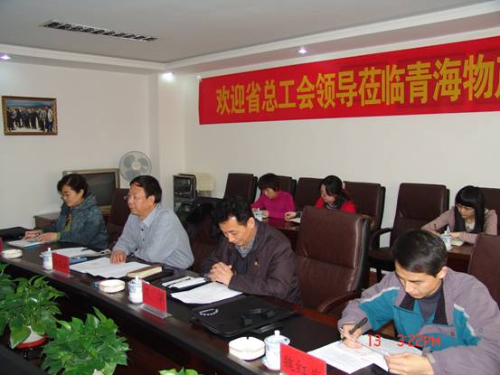 2012年12月13日下午,省總工會第六考核組組長、省總副巡視員兼法律保障部部長李忠云、考核組成員、省總機關黨委專職副書記呂華、考核組成員、省總組織部副調(diào)研員姬紅捷、考核組成員、省總經(jīng)濟部魏紅巖一行蒞臨青海物產(chǎn)集團,對物產(chǎn)工會2012年度工作開展情況進行考核。