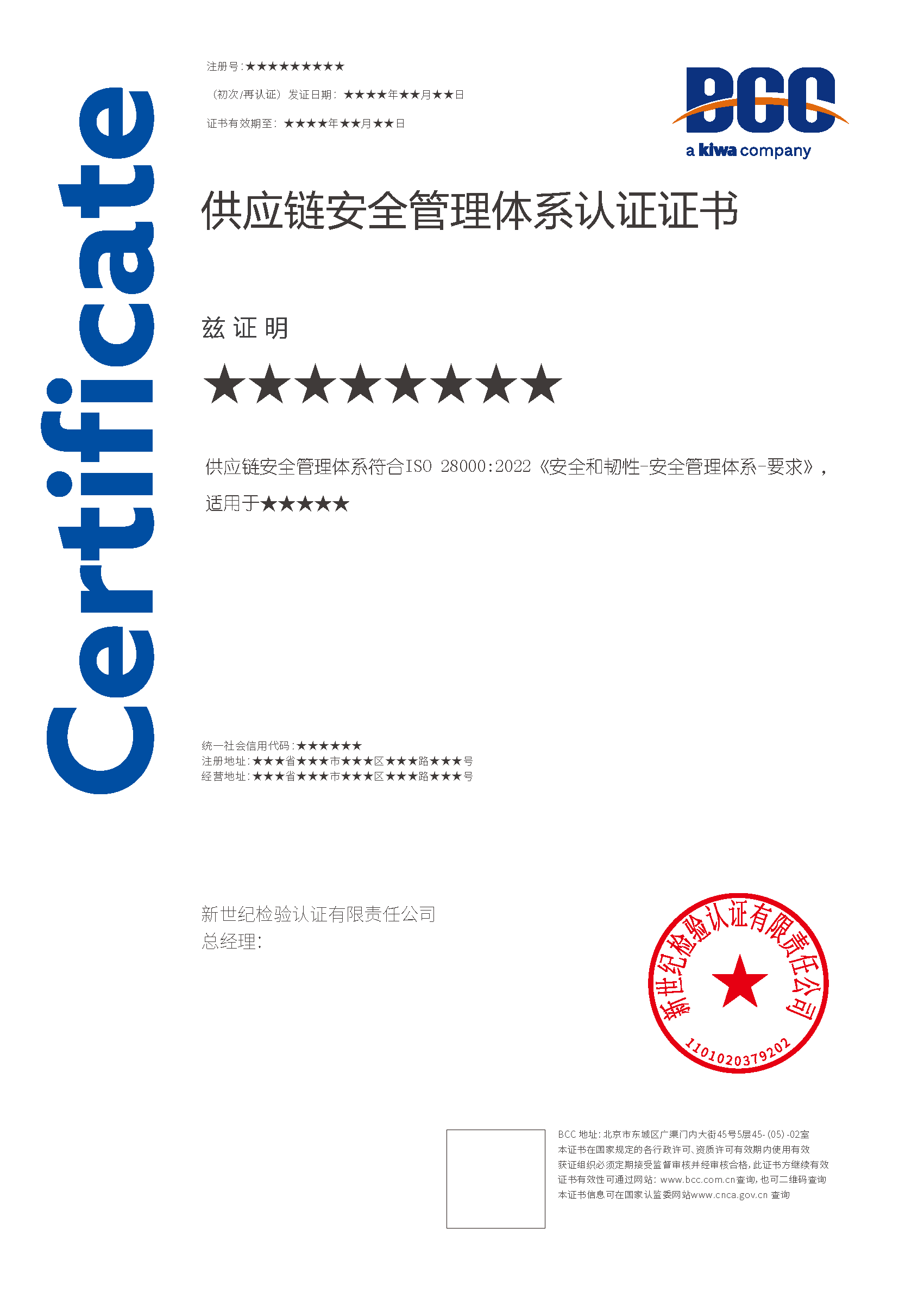 本頁(yè)涉及的認(rèn)證服務(wù)中均有對(duì)應(yīng)的《認(rèn)證實(shí)施規(guī)則》,BCC擁有其最終解釋權(quán)。任何組織及個(gè)人未經(jīng)BCC許可,不得以任何形式全部或部分使用(法律要求除外)認(rèn)證相關(guān)信息。如需獲取相關(guān)實(shí)施規(guī)則請(qǐng)用以下方式聯(lián)系獲?。弘娫挘?10-58579316   郵箱:fwjs@kiwa.cn