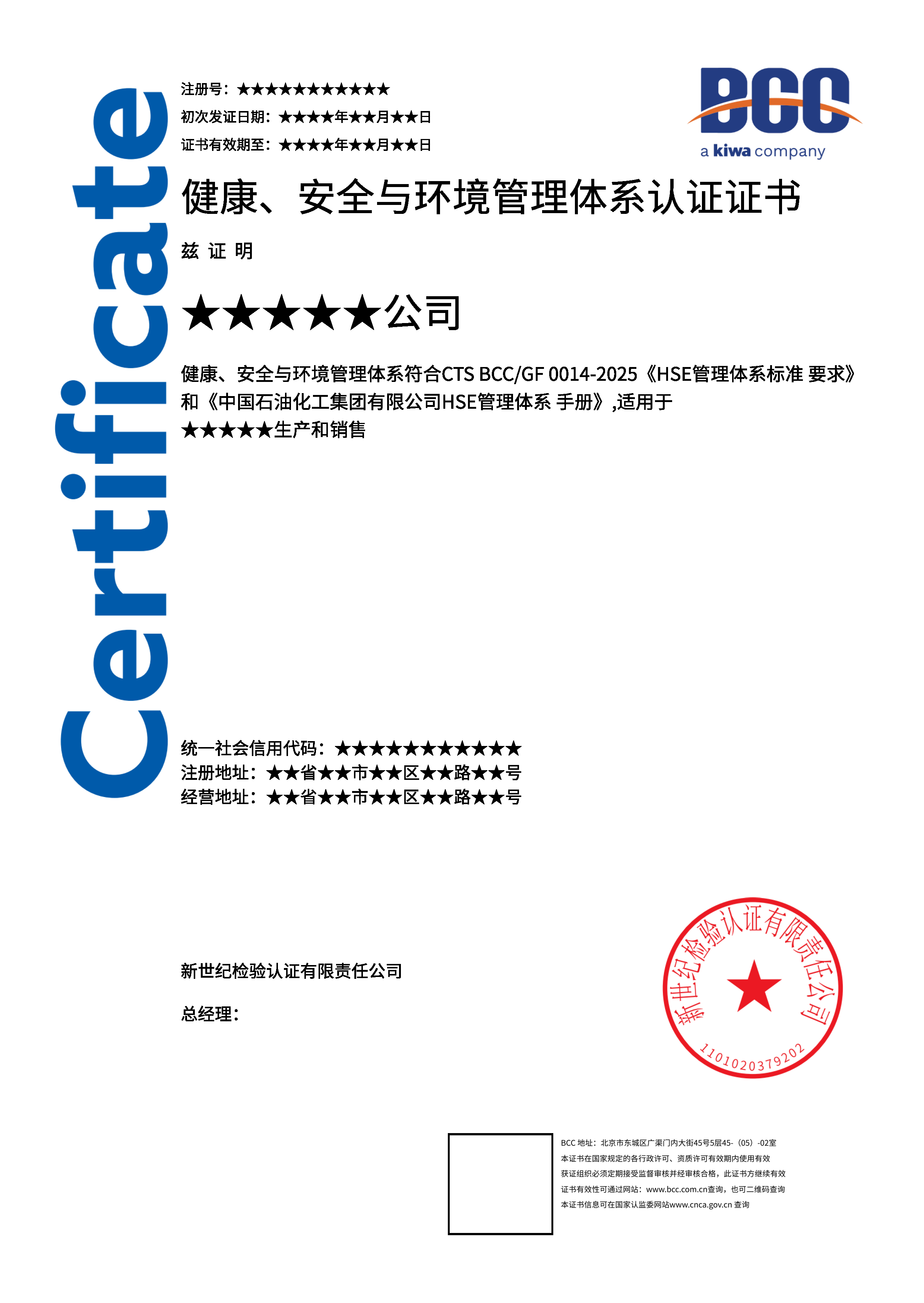 本頁涉及的認證服務(wù)中均有對應(yīng)的《認證實施規(guī)則》,BCC擁有其最終解釋權(quán)。任何組織及個人未經(jīng)BCC許可,不得以任何形式全部或部分使用(法律要求除外)認證相關(guān)信息。如需獲取相關(guān)實施規(guī)則請用以下方式聯(lián)系獲取:電話:010-58579316   郵箱:fwjs@kiwa.cn