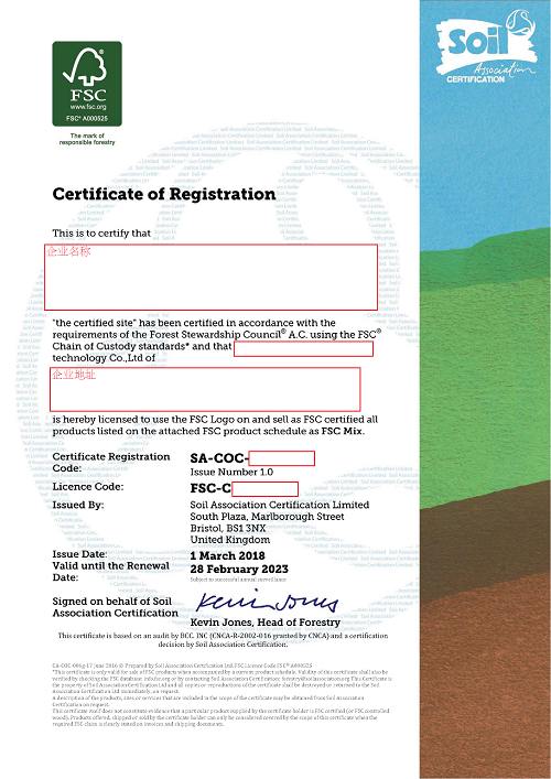 產(chǎn)銷監(jiān)管鏈認(rèn)證證書 FSC證書