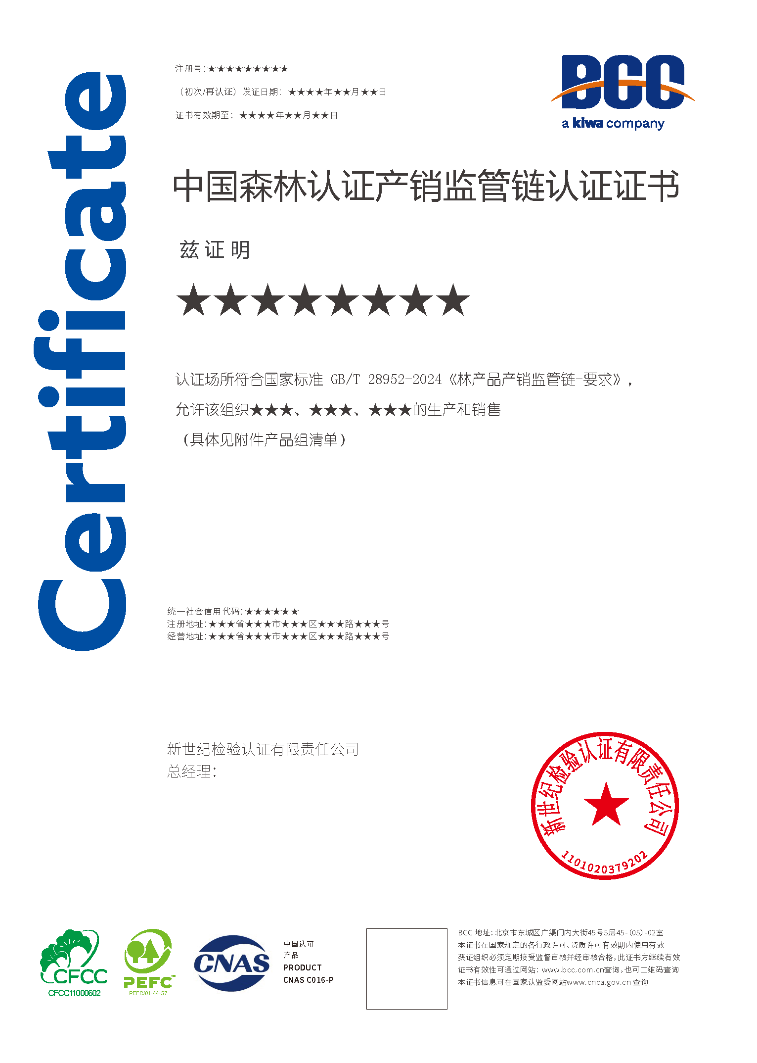 Kiwa BCC已經(jīng)獲得英國土壤協(xié)會SA授權(quán),可在中國開展FSC®產(chǎn)銷監(jiān)管鏈認(rèn)證(FSC® N001893)和PEFC產(chǎn)銷監(jiān)管鏈認(rèn)證。同時,可為組織提供CFCC產(chǎn)銷監(jiān)管鏈認(rèn)證服務(wù)。