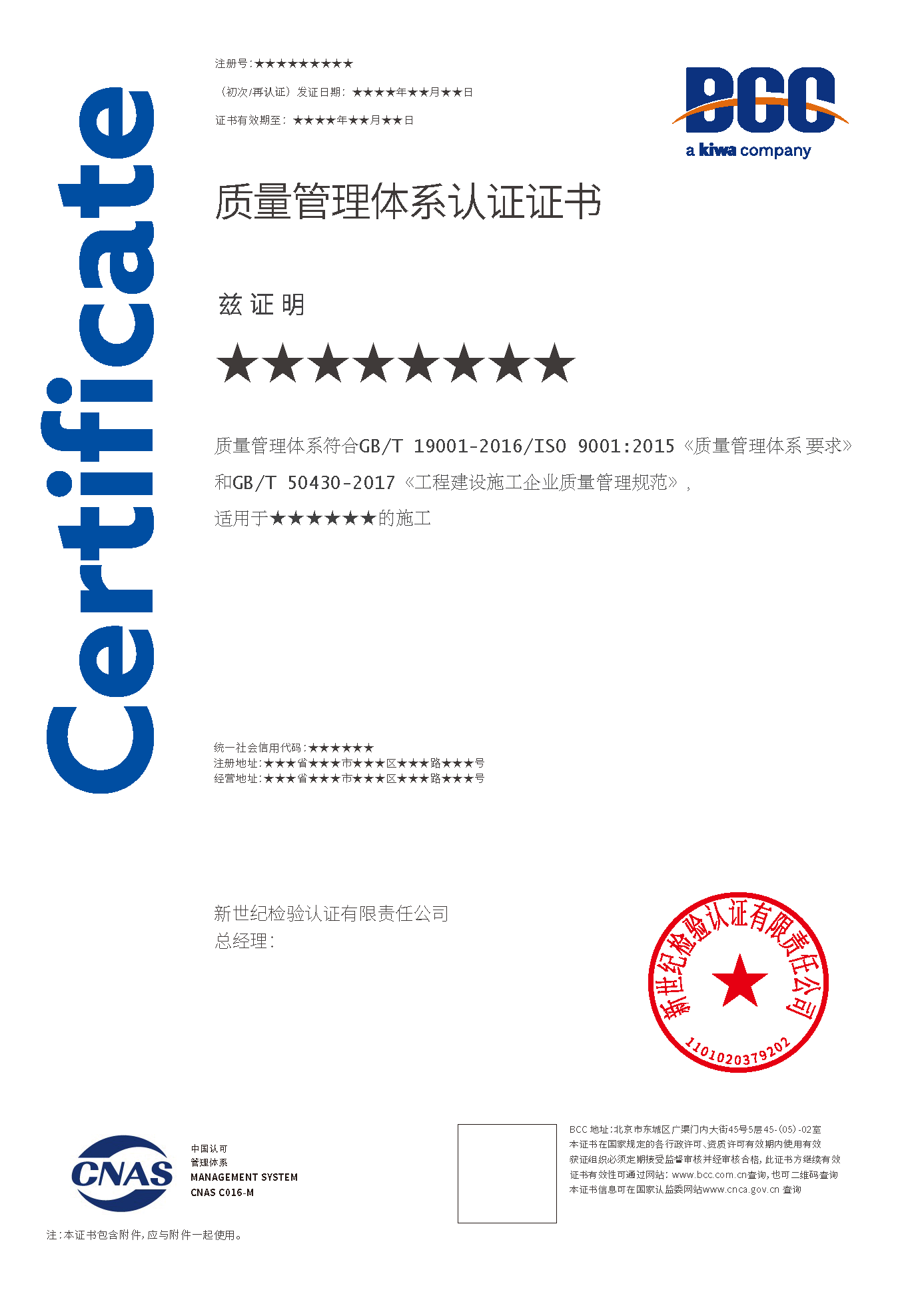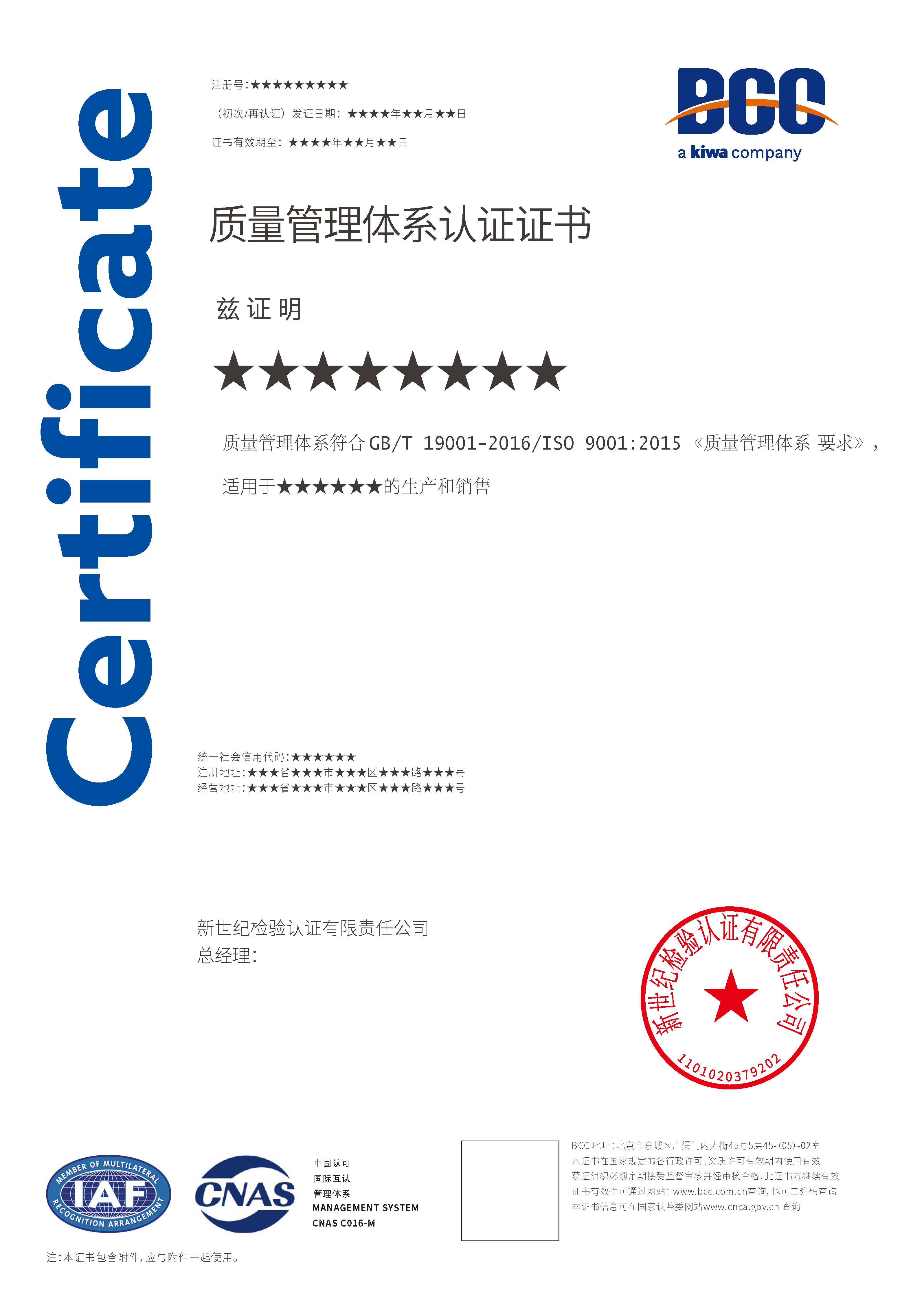 本頁(yè)涉及的認(rèn)證服務(wù)中均有對(duì)應(yīng)的《認(rèn)證實(shí)施規(guī)則》,BCC擁有其最終解釋權(quán)。任何組織及個(gè)人未經(jīng)BCC許可,不得以任何形式全部或部分使用(法律要求除外)認(rèn)證相關(guān)信息。如需獲取相關(guān)實(shí)施規(guī)則請(qǐng)用以下方式聯(lián)系獲取:電話:010-58579316   郵箱:fwjs@kiwa.cn