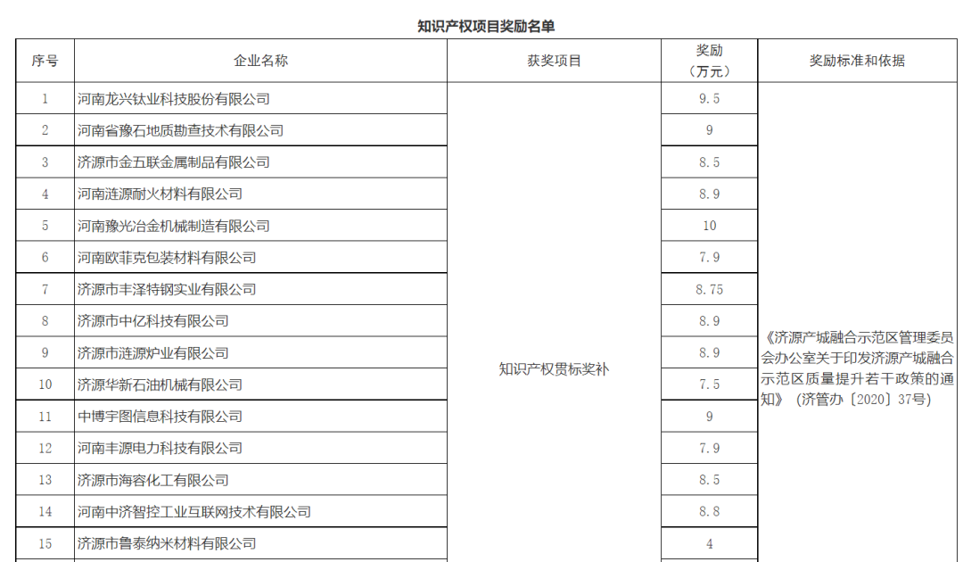 為進一步推進質(zhì)量強市建設(shè),優(yōu)化營商環(huán)境,激勵各單位、企業(yè)和個人開展質(zhì)量提升工作,充分發(fā)揮財政資金對質(zhì)量發(fā)展的促進和導向作用,全面提升質(zhì)量水平,提高企業(yè)核心競爭力,加快培育競爭新優(yōu)勢,建設(shè)創(chuàng)新型高品質(zhì)現(xiàn)代化示范區(qū),按照《中共濟源市委濟源市人民政府關(guān)于開展質(zhì)量提升行動的實施意見》(濟發(fā)〔2018〕22號)和《濟源產(chǎn)城融合示范區(qū)管理委員會辦公室關(guān)于印發(fā)濟源產(chǎn)城融合示范區(qū)質(zhì)量提升若干政策的通知》(濟管辦〔2020〕37號)的規(guī)定,決定對取得2021年度質(zhì)量成果的單位、企業(yè)和個人予以通報獎勵補助。