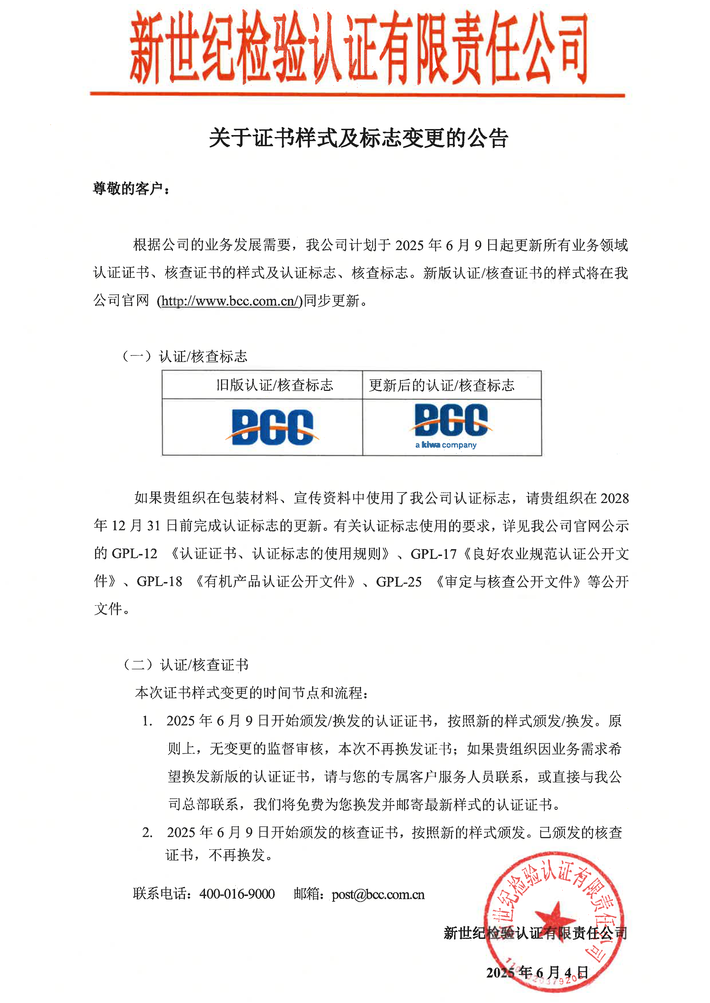關(guān)于證書(shū)樣式及標(biāo)志變更的公告